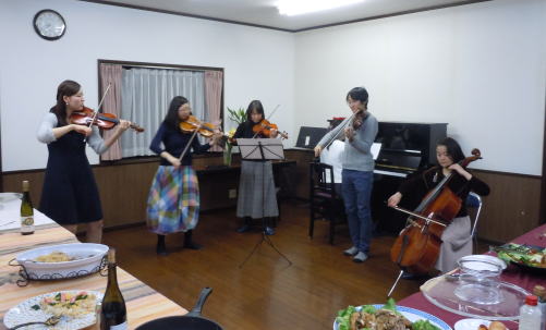 約1ヶ月の延期を経て、やっと開催できました!お料理も音楽もおいしくいただけましたよ!