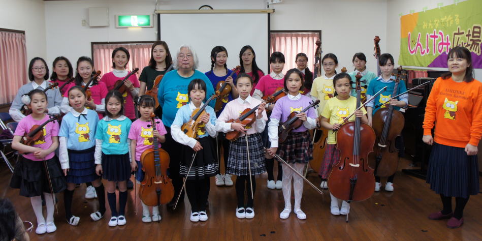 教室の地元の地域のバザーや催し物をおこなっている「しんけみ広場」からのオファーで、教室のオケ参加者がコンサートを行いました。地元の方がたくさん集まってくださり、真剣に聞いてくださいました。子どもたちの保護者の皆様にもたくさんご協力いただき実現しました。ご協力くださった皆様、ありがとうございました!