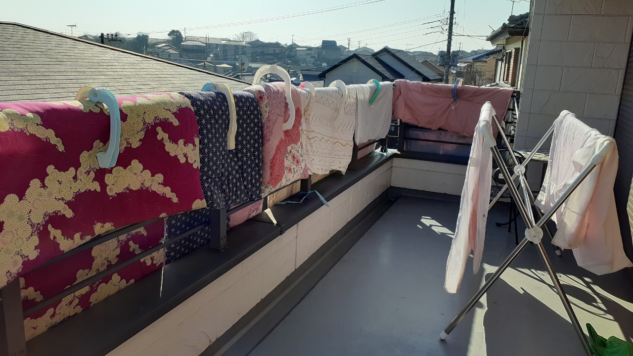 以前合宿をしていた花園教室とは違い、広いバルコニーがあるので、合宿用お布団も