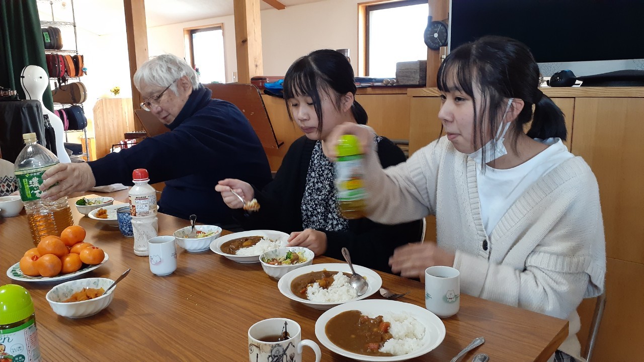 夕飯は牧野先生手作り。おいしくて、みんなこれが楽しみなのです。