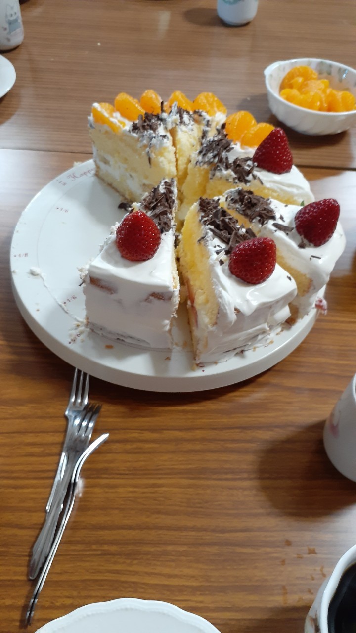 最終日は牧野先生がケーキを焼いてくれました。クリスマス会の打ち上げには忙しすぎて間に合わなかったので、合宿最終日になりました。いちごはオケ参加生徒のお母様から差し入れ。おいしかった~。