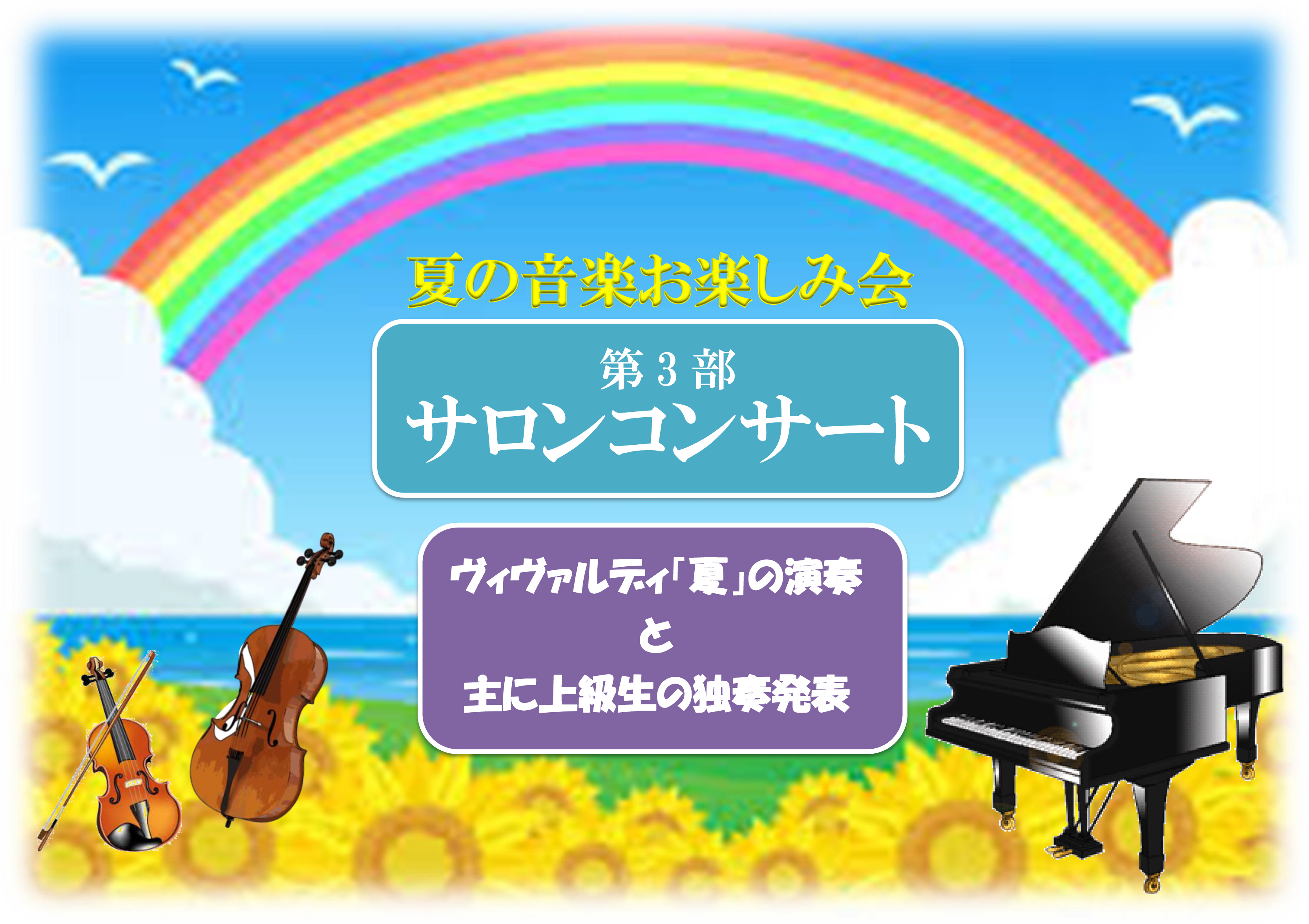 第3部は、サロンコンサートの形で、ヴィヴァルディ「夏」と、上級生の独奏発表。独奏の曲目は、