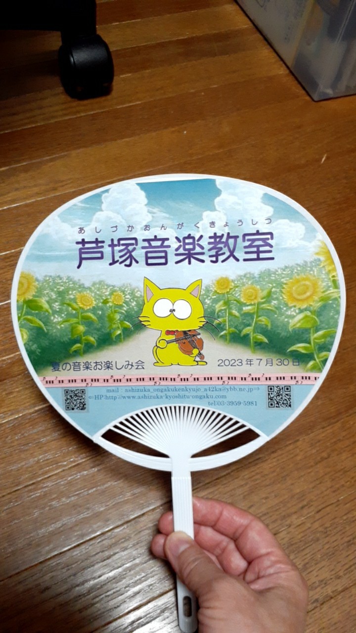 ③にゃんこうちわは斉藤先生デザイン。裏に演奏の感想を書いたメッセージシールを貼れます。