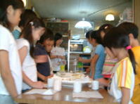 おやつタイムは、ただ単に休憩をするといった意味ではなく、「同じ釜の仲間」という連帯意識を育てたり、食べ方のマナーを覚えたりといったちゃんとした教育の目的があります。上級生になるにつれ、おやつの準備や、準備ができるまで外で遊んでいる子を監督したり、みんなが一緒に遊べるようにまとめたり・・・・・そういったことができるようになってきます。やがて、自然と自分に自信がつき、責任感やおもいやりの心が育つのです。現代の学校教育や塾などの競争教育の中では、子供たちが本当に心を開ける場所や友達を見失いつつあります。世代の違う子供同士が一緒に遊ぶ姿は、今では本当に珍しいことになってしまいました。当教室のアンサンブル教育で培われたおもいやりや責任感は、子供たちの心の一生の宝となってささえてくれるに違いありません。