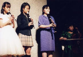 更に、「プレオーケストラ」といって、3つの音を習ったらもうオーケストラの伴奏でメロディーが弾けるというカリキュラムがあります。習い始めて間もないまだじっとしていることもままならない年齢の小さなお子様も、ちょっと年上のお兄さん、お姉さんに面倒をみてもらい、いつのまにか落ち着いて舞台に立てるようになっています。