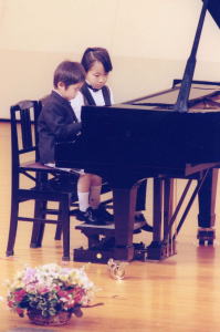 それは、伴奏を教えるにはピアノの先生が相手の楽器についてもある程度の知識がないとできないからです。また、ピアノを弾く技術だけではなく、合わせのタイミングなどの指導に先生の技術が必要となるからです。大人同士で合わせる場合では、お互いが曲のイメージを知っているので、なんとなく合わせるということができます。しかし、子供の場合には、その「なんとなく」という言葉が存在しないのです。当教室の伴奏の指導では、ソリストが落ちたり迷ったりしたら、即座にソロパートを弾いてあげて助けたり、1小節とばしてしまったら伴奏も一緒に1小節とばしてあげたり・・・・そういった一流の伴奏者でもできないような技術を指導して、的確性を養います。伴奏は、ただソリストについていくだけではなく、ささえてあげる演奏が大切なのです。ですから当教室では原則として年上の子が年下の子の伴奏をします。そういった伴奏の極意を指導することで、ソロ楽器であるピアノの生徒さんも高度なアンサンブル技術を身につけることができるのです。何も知らない素人さんは、「ソロより伴奏の方が簡単だ。」と思いがちです。音楽の道をめざす音大生でさえも「伴奏の練習なんかしている時間があったら自分のソロを練習していた方がいい。」などと言っているのをよく耳にします。伴奏の奥深さや大切さを教わったことがないのだから、致し方ないと思うしかありませんが・・・・。