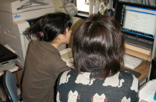 インストラクターの勉強をするといっても、テキストや教科書を持ってきて机の上で勉強する訳ではありません。先輩の諸先生方の実際のレッスンを聴講してそのレッスンの後に改めてレッスンの内容について先生から質問を受けたり、あるいは自分の意見を述べたりして実地に勉強するわけです。コンピューターなどの手ほどきも実際に教室でやっている仕事の仲から、比較的容易なものから順番に学んで行きます。