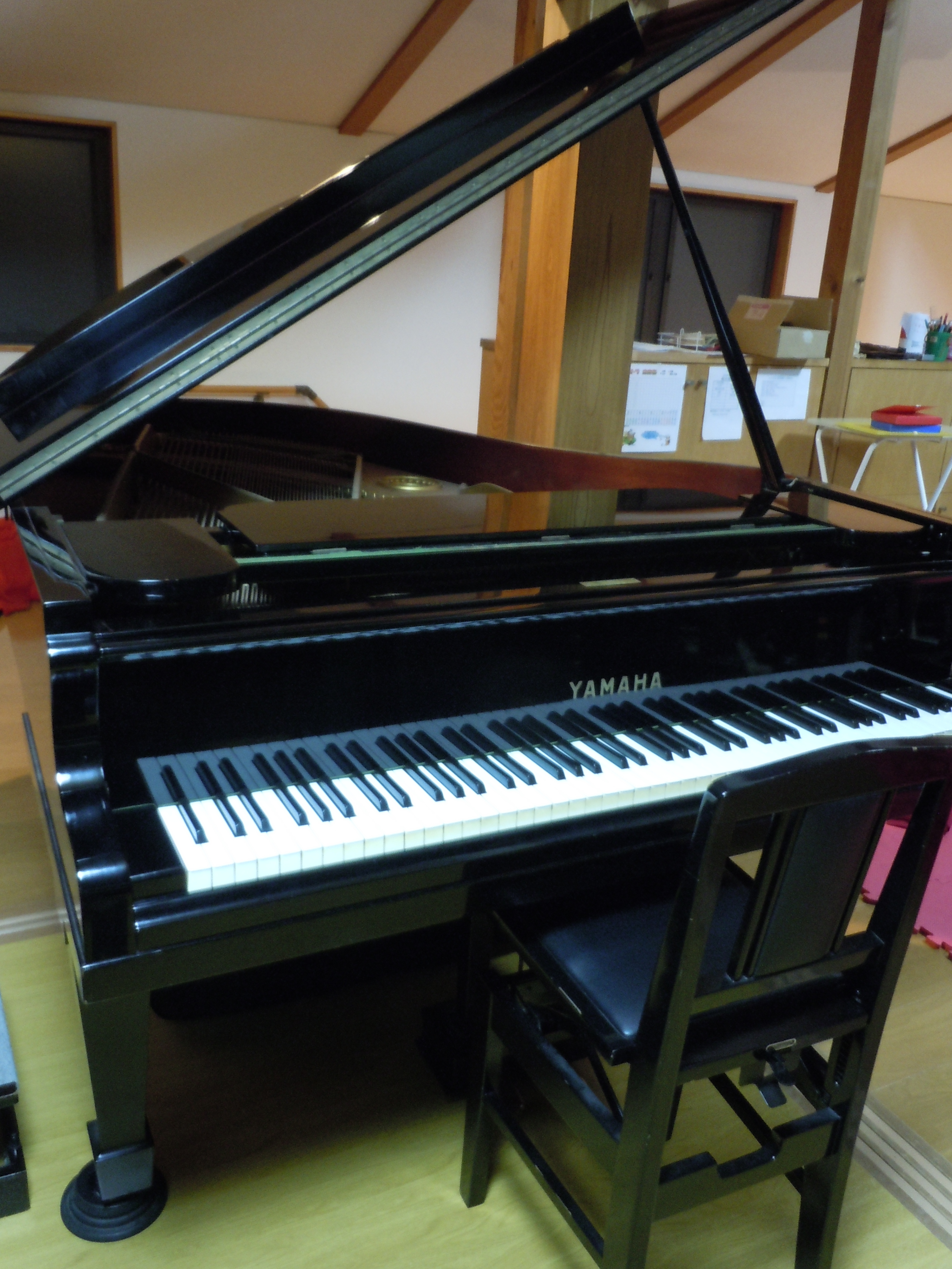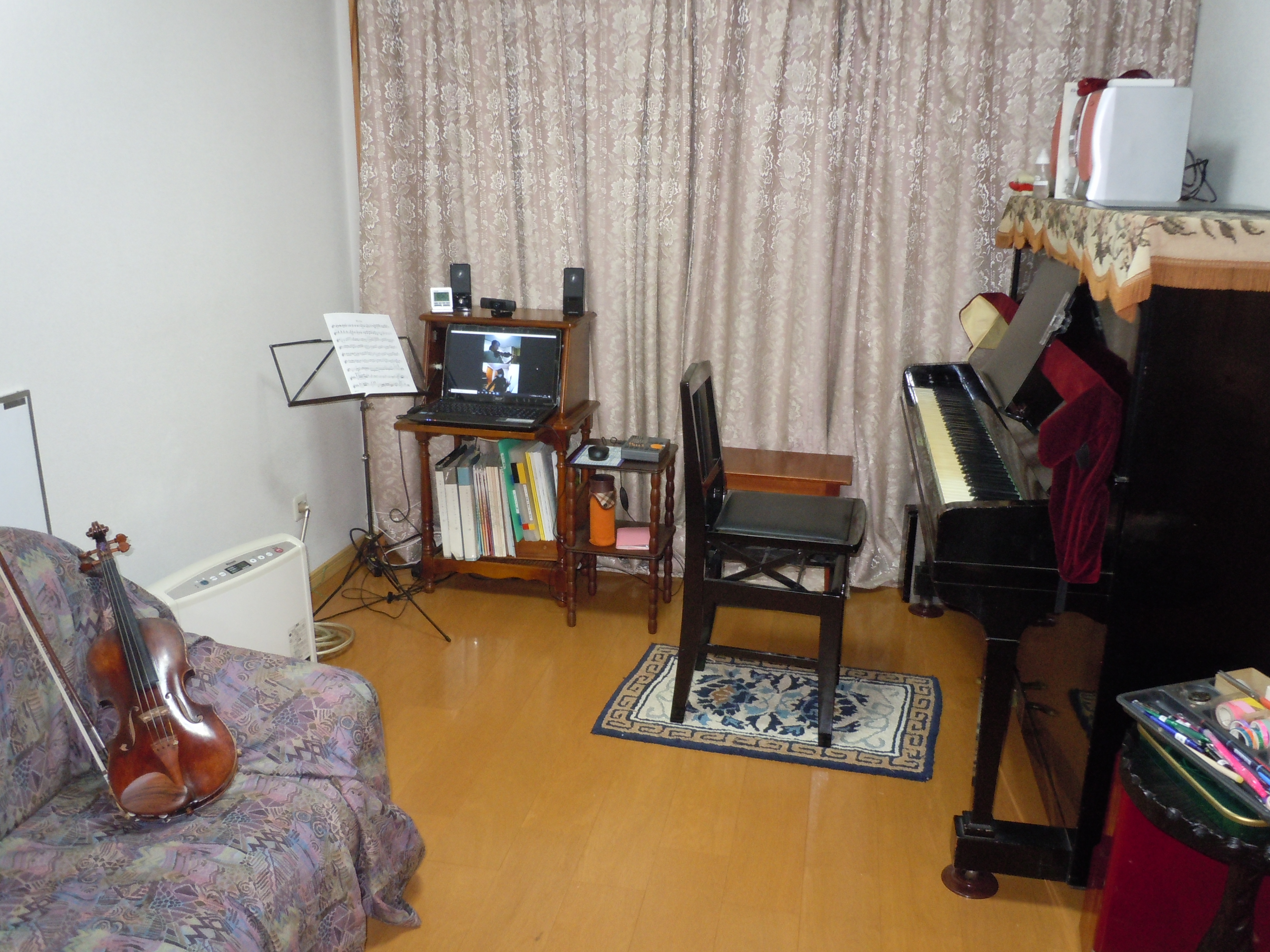 使われるレスローの弦が張ってある特別仕様のピアノです。テレワークレッスンの為の