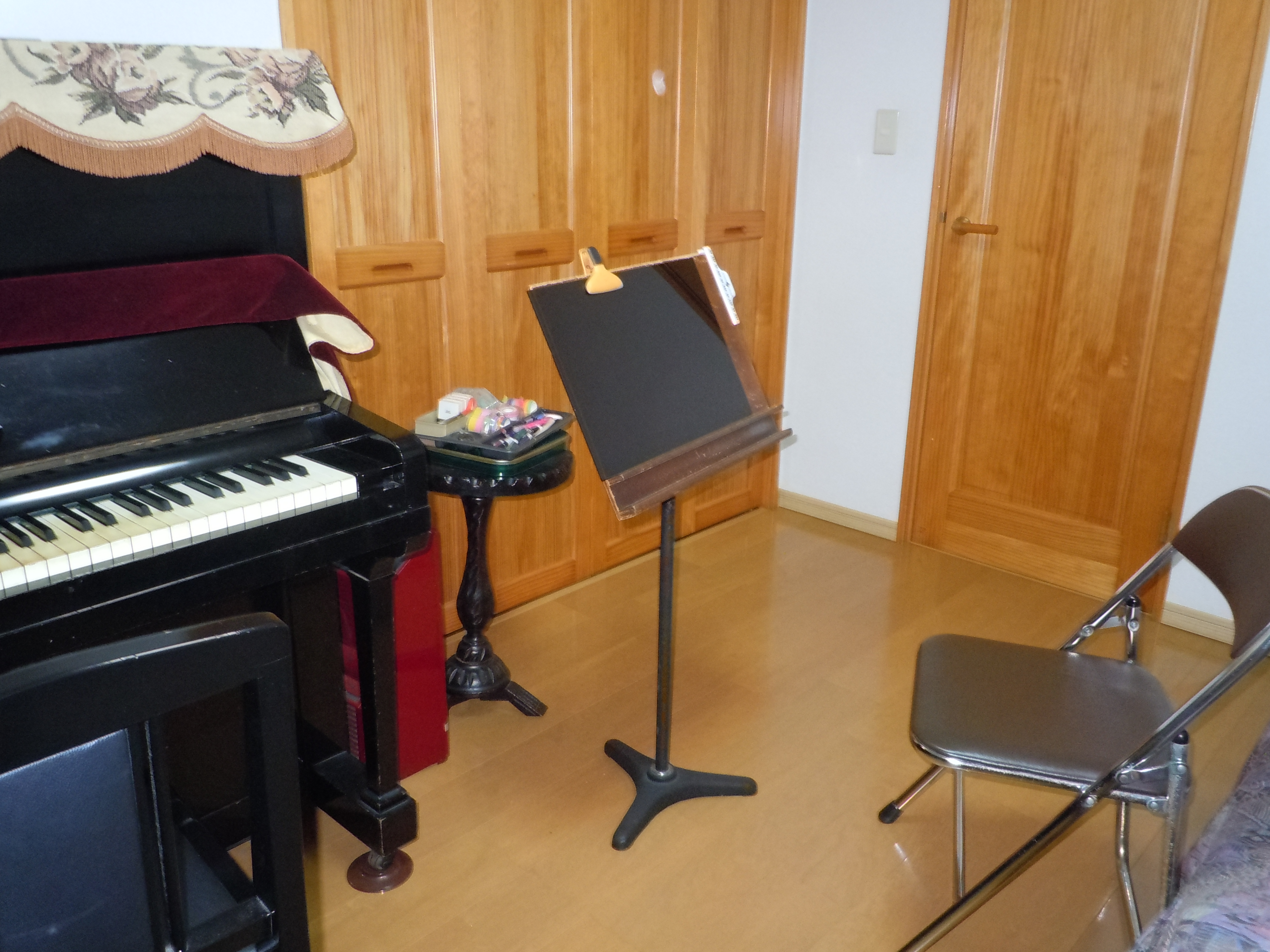弦楽器レッスン室。今では手に入りにくい象牙の鍵盤のアプライトピアノ。スタインウェイに