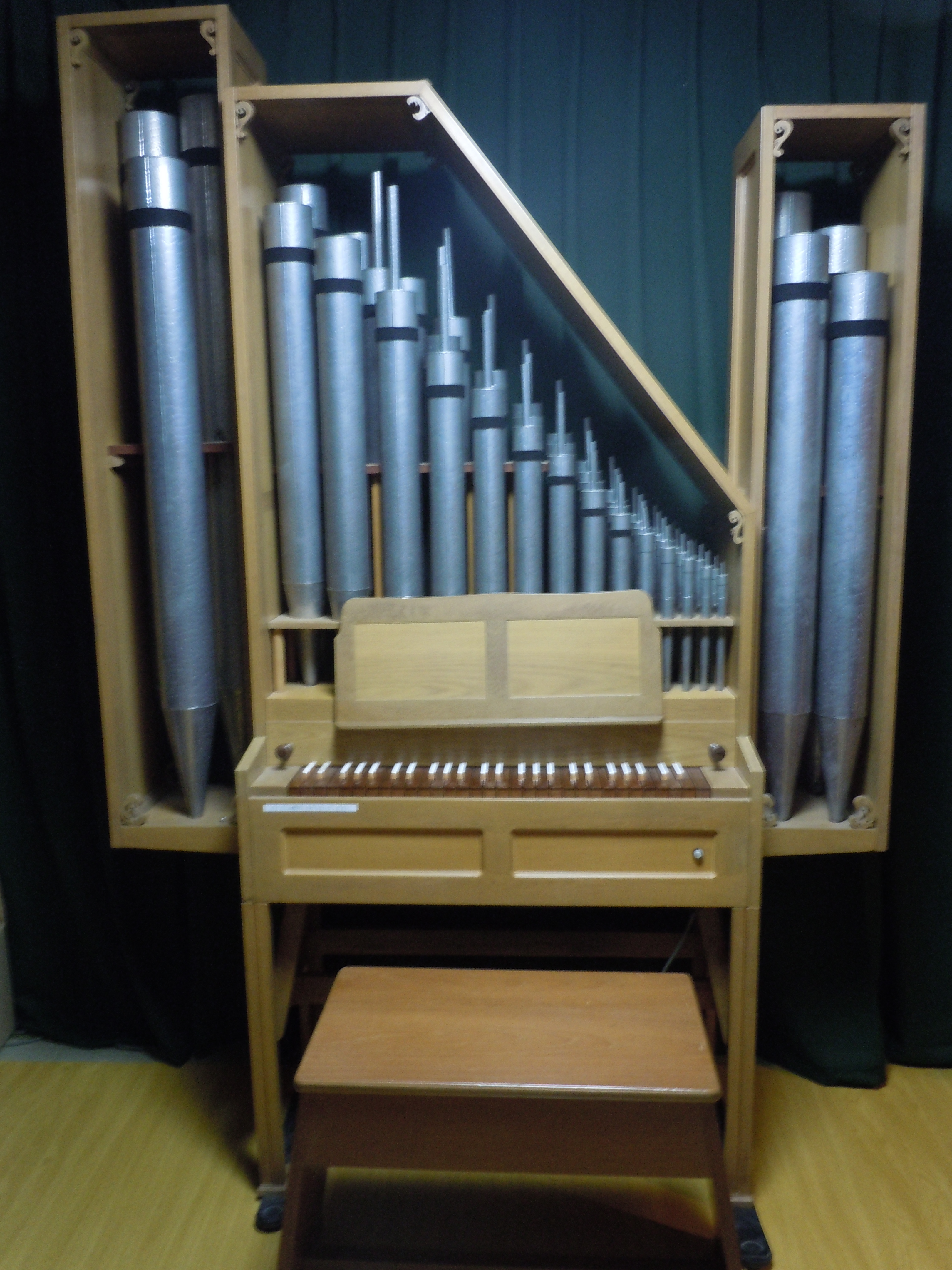 2階のサロンには、芦塚先生が設計したポジティーフパイプオルガンがあります。