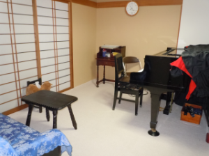 ピアノレッスン室。グランドピアノで落ち着いた雰囲気で レッスンできます。